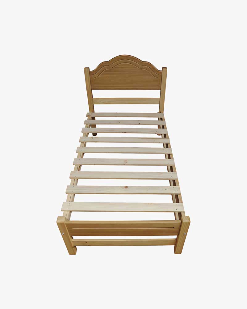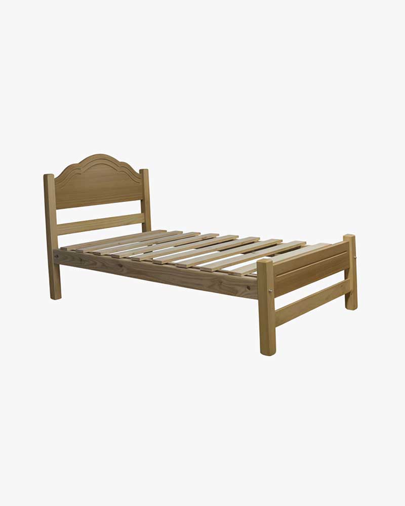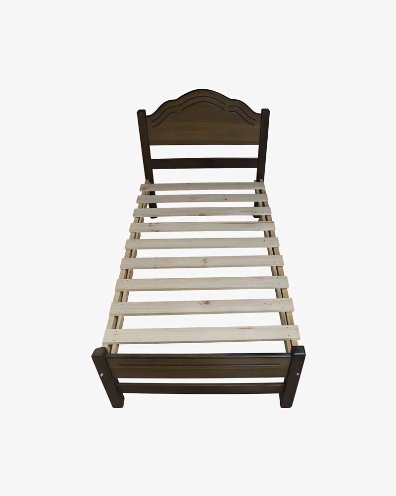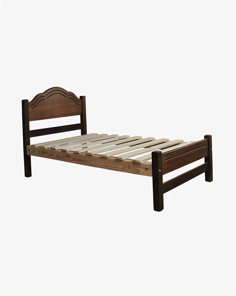 Marquesa de 1 plaza y media en madera de pino, colores natural o café oscuro. Diseño robusto y elegante, perfecta para dormitorios compactos.